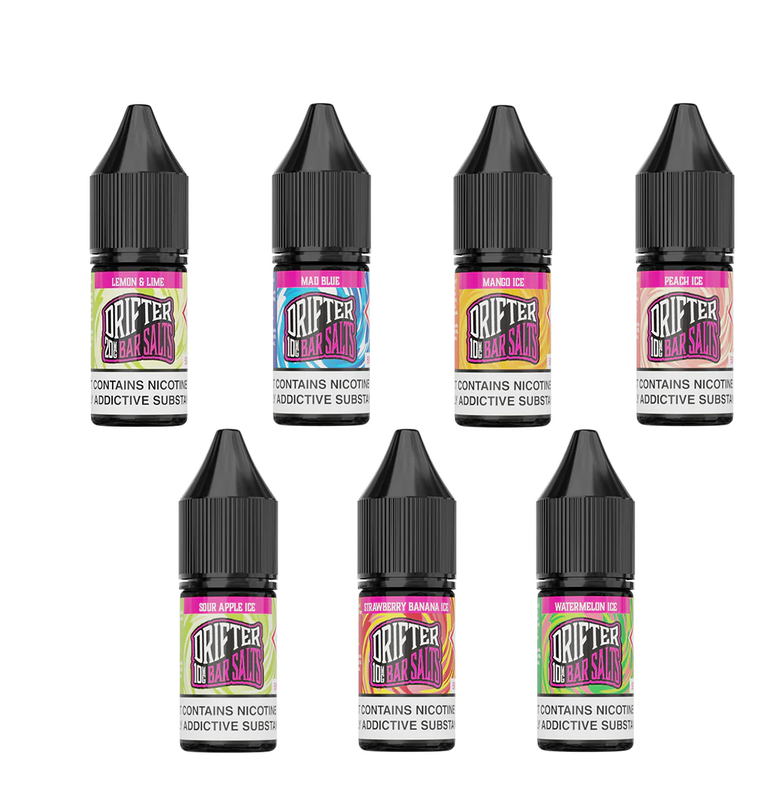 Created by the award-winning team at Juice Sauz, their range of Drifter Bar Salts offers 33 of the bold, disposable vape juice flavours you know and love! These 10ml bar salts are designed to suit any vaping setup, from pod kits to AIO vape kits, and MTL tanks. Drifter Bar Nic Salts are available in 5mg, 10mg, and 20mg nicotine strengths, allowing you to pick your desired nicotine strength. With double-concentrated and disposable bar flavours, Drifter Bar Salts are full of rich flavour that mirrors the taste of disposables but delivers up to 60 times more puffs!
